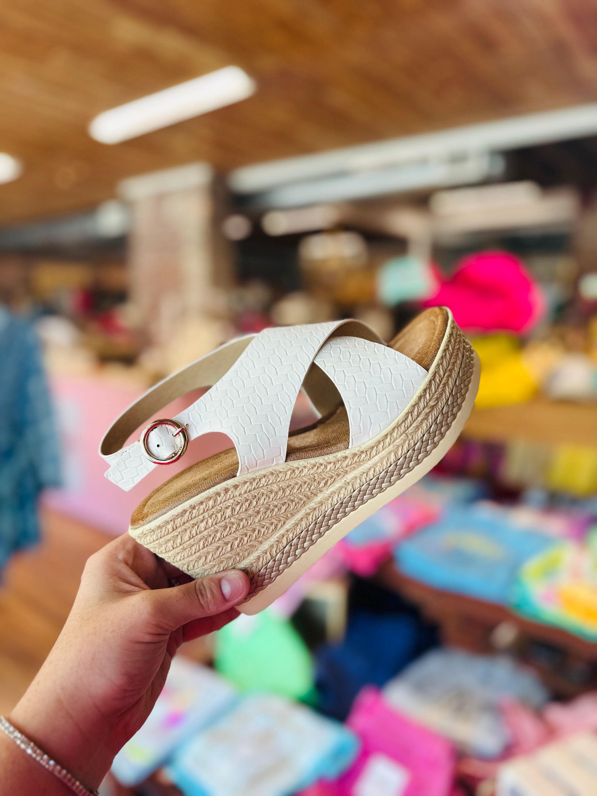 Elevate your style with Pierre Dumas White Passion wedges. These white wedges effortlessly combine comfort and fashion, providing support for all-day wear. Step into these wedges and experience the perfect blend of style and comfort. Upgrade your wardrobe with these must-have shoes.