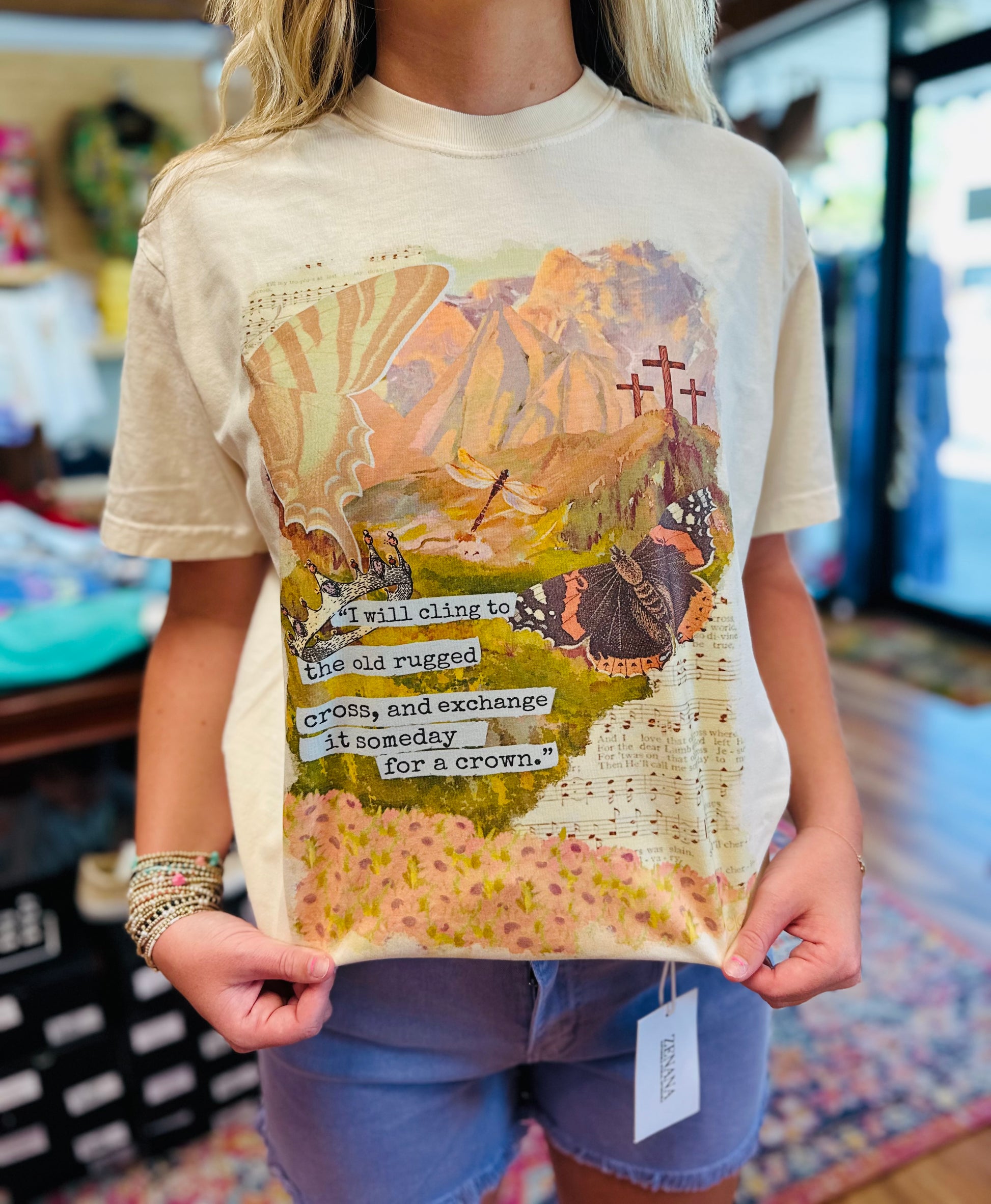 Experience the timeless symbol of faith with our Old Rugged Cross tshirt. Made with a rugged cross design, this shirt serves as a reminder of strength and perseverance. Crafted with durable material, it's perfect for any occasion. Show your devotion with this statement piece.